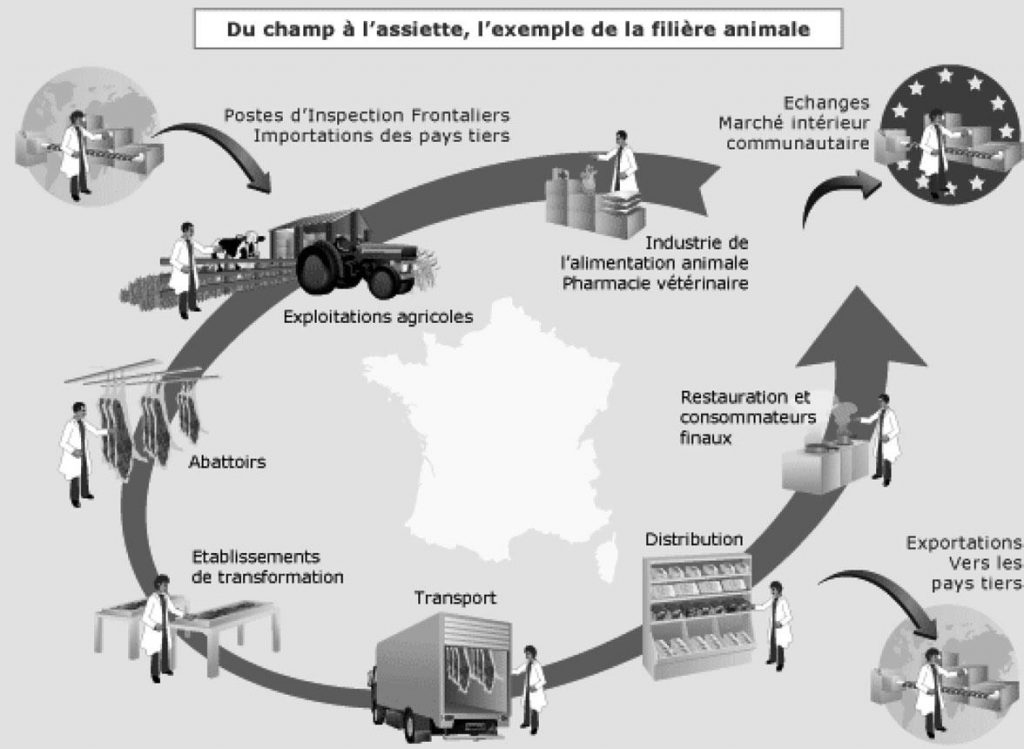 Elle concerne tous les acteurs de la chaîne alimentaire : les exploitants directement impliqués (producteurs, transformateurs, distributeurs, etc.) ou indirectement impliqués dans la chaîne (fournisseurs de matériaux d’emballages par exemple) et en plus elle est mondiale ! (cf. Figure 2.8).
