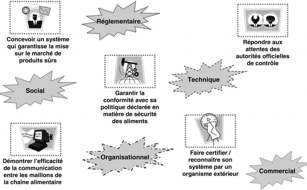 – l’assurance apportée aux différents acteurs de la chaîne alimentaire d’une maîtrise plus efficace et plus dynamique des dangers liés à la sécurité des aliments ;