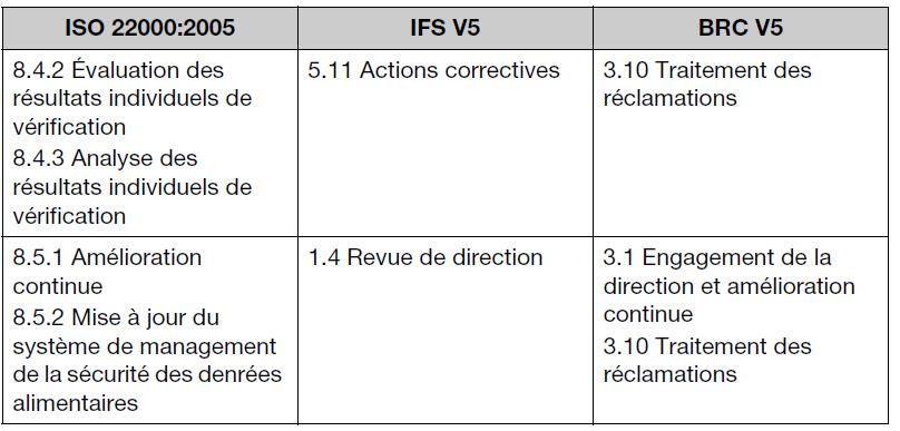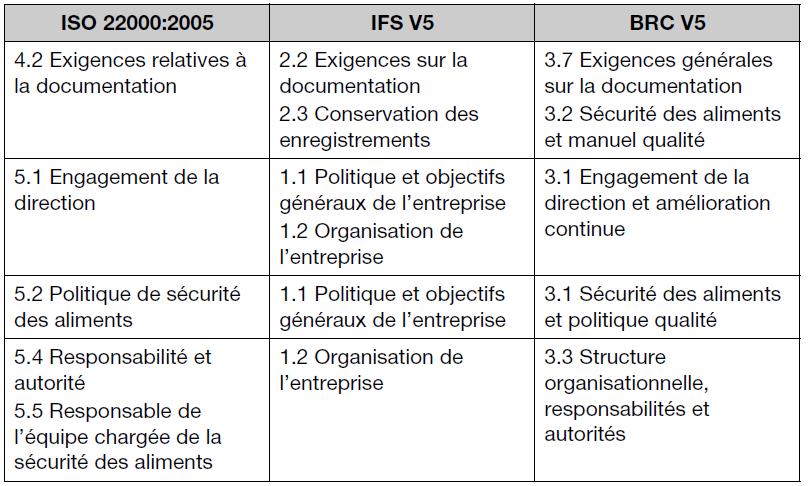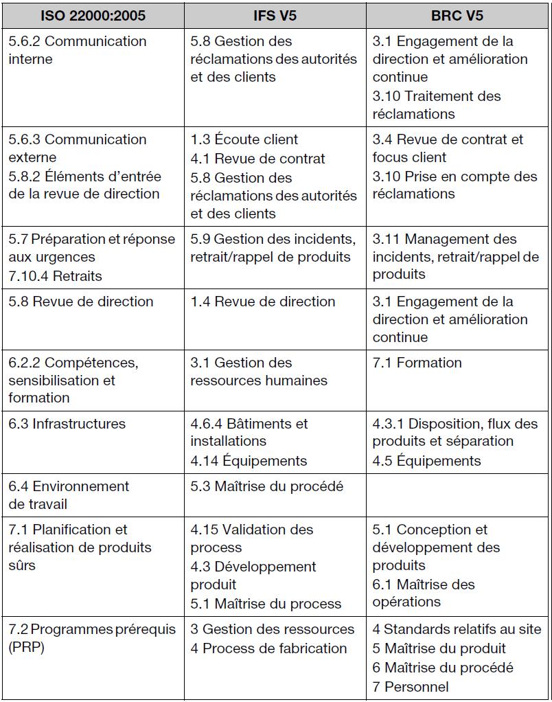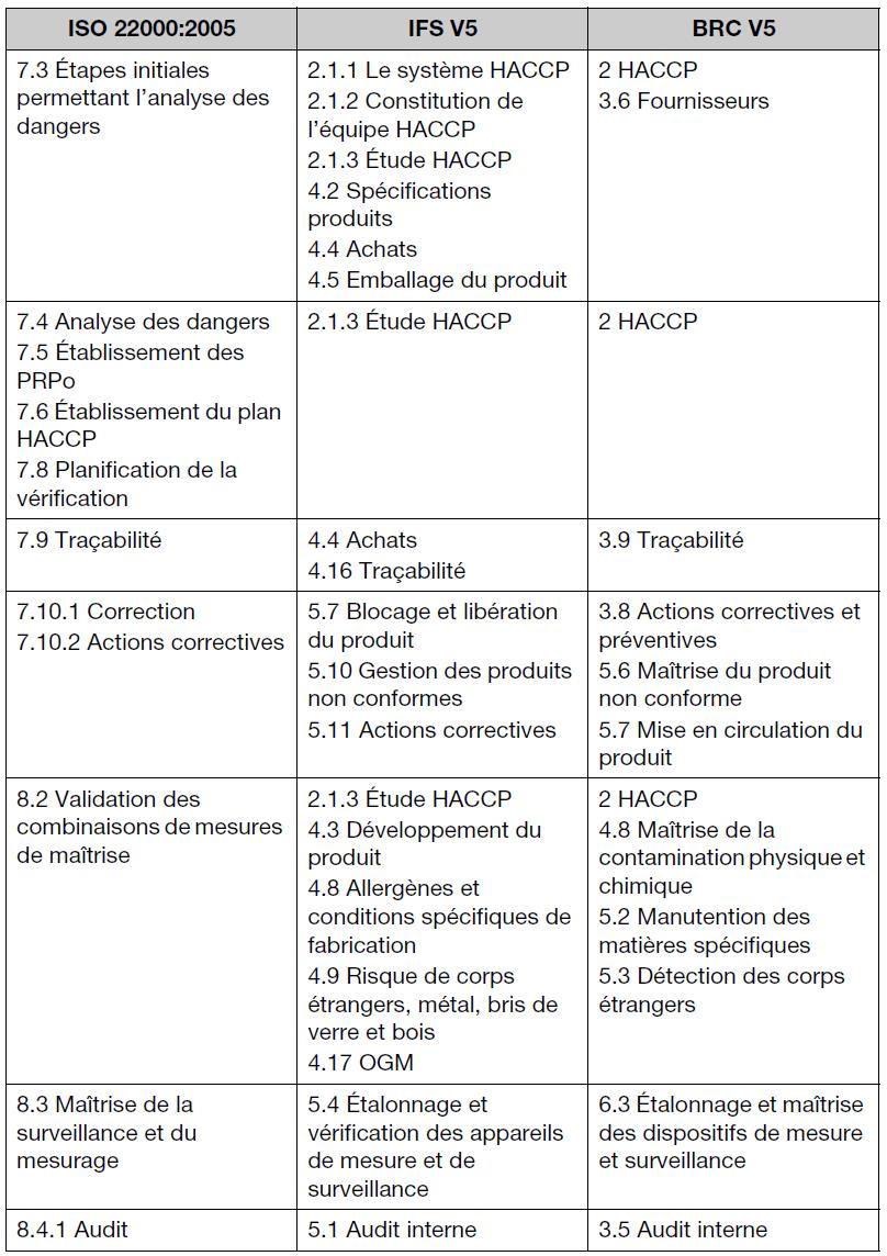 Tableau 2.7 Tableau de correspondance ISO 22000/IFS/BRC