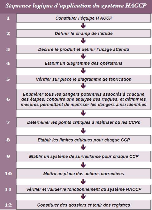 L’application de la méthode HACCP consiste en l’exécution des douze étapes, telles qu’elles sont décrites dans la séquence logique d’application du système HACCP :